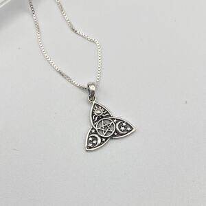 Sterling Silver Celtic Pentagram, Sun, Moon, & Stars Necklace Irish Trinity Knot
