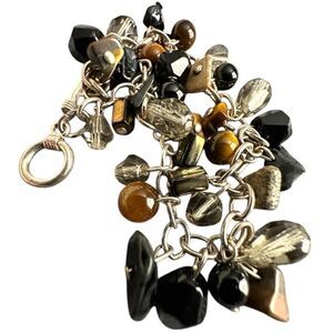 Elevate your jewelry collection with this stunning .925 sterling silver charm bracelet, adorned with an exquisite mix of genuine gemstones and beads. This one-of-a-kind piece features a variety of natural stones, including: