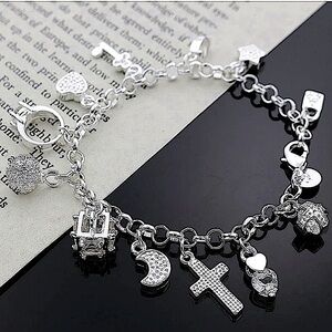 Sterling Silver Charm Chain Link Bracelet
