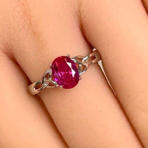 Sterling Silver Charmed Oval Faceted Ruby Ring New
