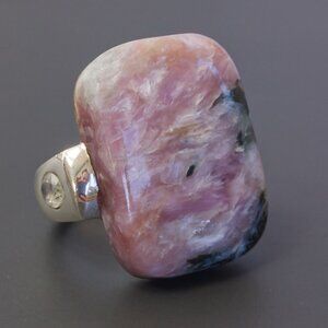 Heavy sterling silver bezel and band give this ring presence and balance against the large stone face. A striking piece for collectors of rare stones and lovers of statement jewelry alike.