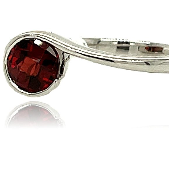 Sterling Silver Checkerboard Red Garnet Round Solitaire Ring