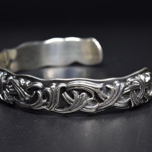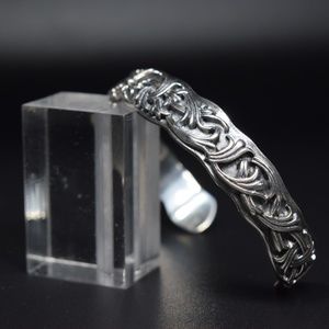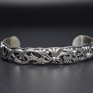 Sterling Silver Chrome Cross Flower Vine 925 Adjustable Bangle Cuff