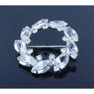 Offered is a Sterling Silver Circle Brooch With Clear Crystals Marked STER CD.