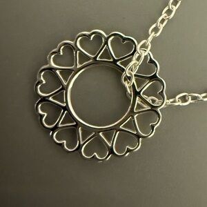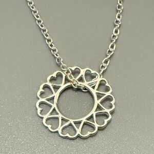 Sterling Silver Circle of Hearts Necklace . Perfect everyday necklace with a sweet love vibe. Genuine 925 sterling silver and e-coated for anti-tarnish protection, extra durability, and protection of your sterling silver necklace.