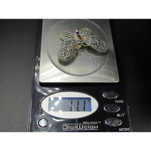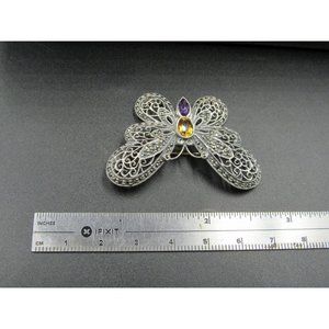 Sterling Silver Citrine Amethyst Marcasite Butterfly Pin Brooch