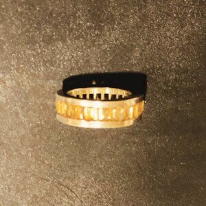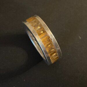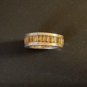 Sterling silver ring with channel-set yellow citrine stones all around. Size 5.5