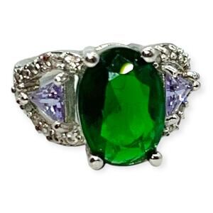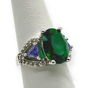 Sterling Silver Citrine Ring Tanzanite 925 Green Purple Statement Jewelry