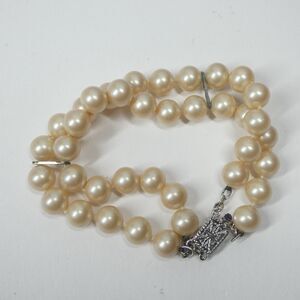 Sterling Silver Clasp Faux Pearl Bracelet Vintage 2 Strand Classic
