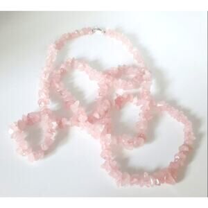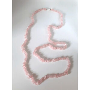 Sterling Silver Clasp Rose Quartz Pink Semi Precious Gemstone Chips 35" Necklace