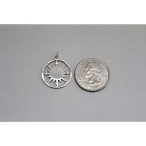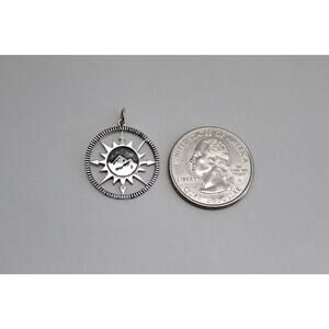This is a Sterling Silver Compass Pendant with Mountain Center Charm. Both the charm and the necklace are Sterling Silver.