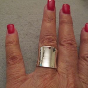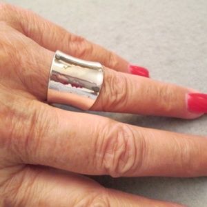 A beautifully high polished wide concave cigar band ring made of 925 sterling silver. It measures 3/4" at its widest, narrowing in back for a comfortable fit. It weighs a nice 5gms. on average and very comfortable to wear. Flows around your finger effortlessly....looks fabulous! Keep in mind that this is a wider ring, it will fit a little more snug, so you might like to size up. Stamped 925.