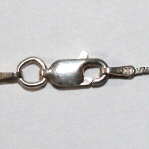 Chain measures 24 inches length, pendant measures 1 and 7/8ths of an inch length and 1/2 an inch wide.