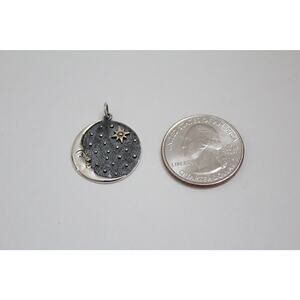 This is Sterling Silver Crescent Moon Face Pendant with Bronze Star Charm. This charm is on an 18 inch chain.