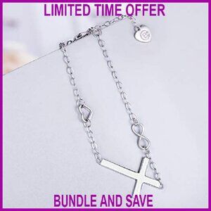 Style: Dainty link bracelet with sideways cross and infinity heart design