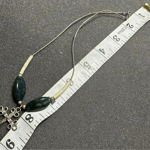 Sterling Silver Cross Pendant And Agate Natural Stone Beaded 16 Inch Necklace