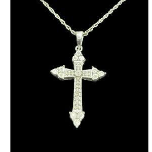 Sterling Silver Cross Pendant Necklace 1/10 CTTW Diamond 18" Chain 925 Crucifix