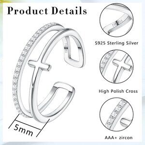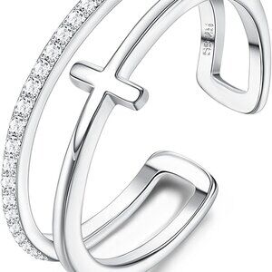 Sterling Silver Cross Ring Women Adjustable Faith Love Zirconia Jewelry