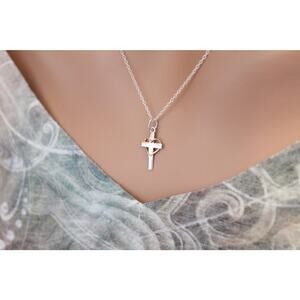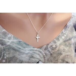 This is Sterling Silver Cross with Wire Bronze Heart - Faith Charm Necklace. Both the charm and the necklace are Sterling Silver. This charm is on an 18 inch chain,