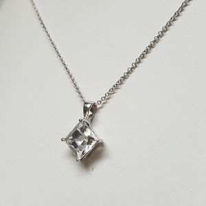 This is a beautiful sterling silver necklace measuring 18 in Long with a sterling silver crystal pendant three quarters of an inch long. This would look fabulous with that little black dress or any other outfit you would decide to wear it with.