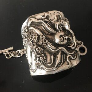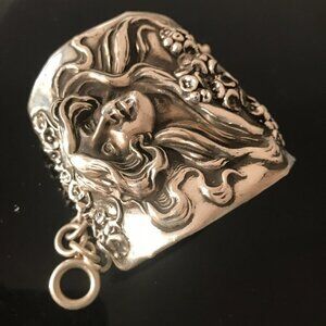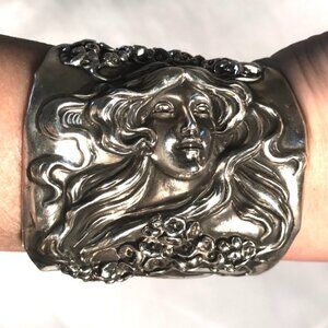 Sterling Silver Cuff Bracelet Victorian 925 Art Nouveau Kerr Antique Goddess