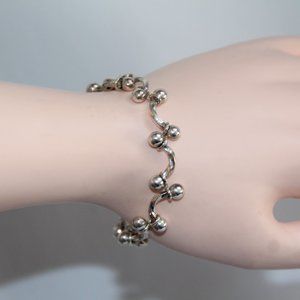 Sterling Silver Curved Bar-Ball Link Bracelet