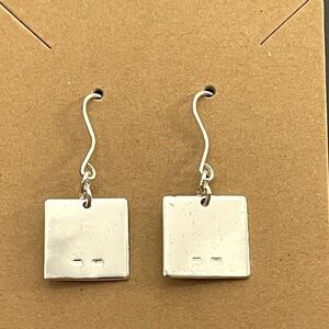 Sterling Silver DREAM Engraved Square Disc Dangle Earrings