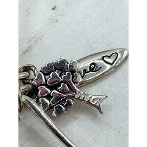 Sterling Silver Dainty Bangle Bracelet With Love And Tree Charms Hook Closure