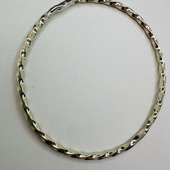 Sterling Silver Dainty Rope Twist Bangle Bracelet. Marked STERLING 925. Length around is 8”. Weight is 6.54”.