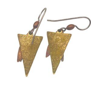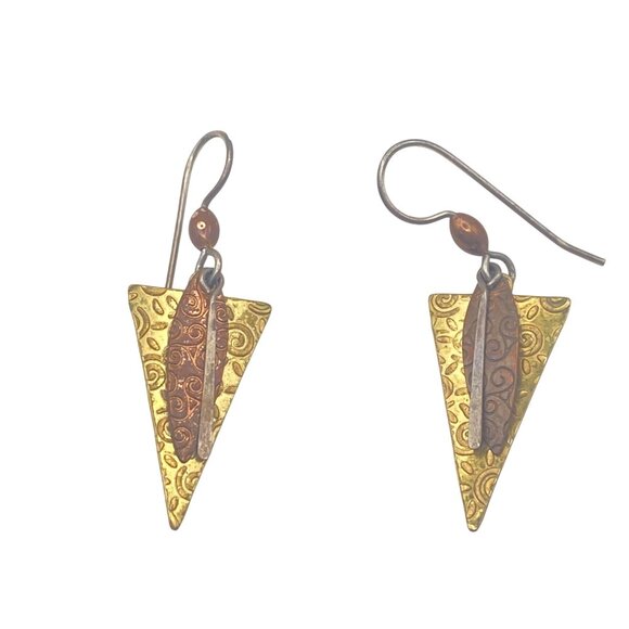 Sterling Silver Dangle Earrings Copper Brass 1.75" Boho Hippiecore Mixed Metal