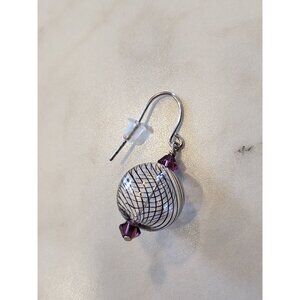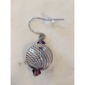 Sterling Silver Dangle Earrings W/ Swarovski Elements Purple Beads Textured Ball