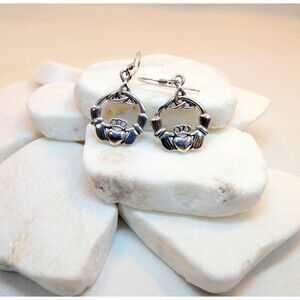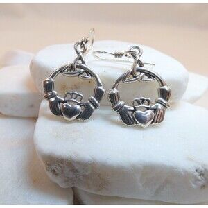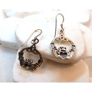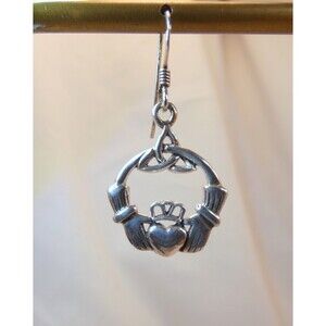 Sterling Silver Dangling Irish Claddagh Triquetra Earrings Fine Detail
