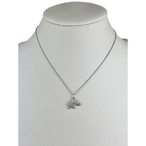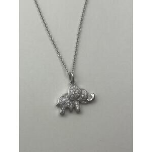 Sterling Silver Delicate Chain Necklace 16" CZ Pave Elephant Pendant