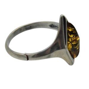 Sterling Silver & Diamond Shaped Amber Ring **See Note**