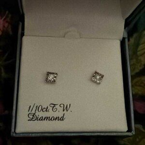 Sterling Silver Diamond studs - 1/10 CT TW - NEW