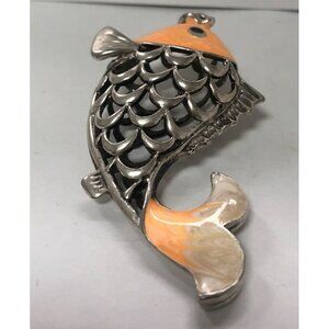 Sterling Silver Dimensional Fish Enamel Large Puffy 925 Drop 3"