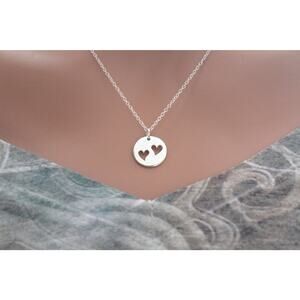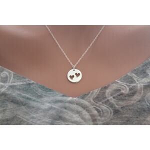 Sterling Silver Disk with Two Heart Cutouts Charm Necklace