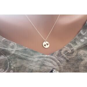 This is a beautiful Sterling Silver Disk with Two Heart Cutouts Charm Necklace. Both the charm and the necklace are Sterling Silver.