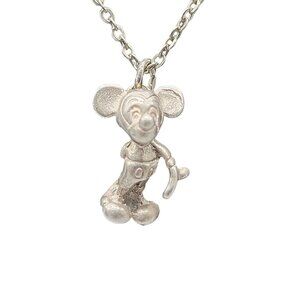 Sterling Silver Disney Vintage Pendant 925 Mickey Mouse 19" Silver Tone Chain
