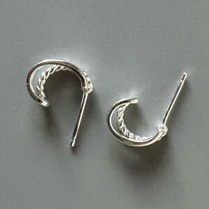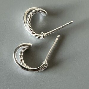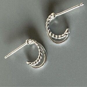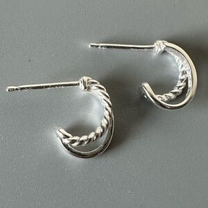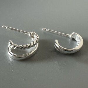 Sterling Silver Double Hoop Smooth and Twist Tiny Huggy Earrings