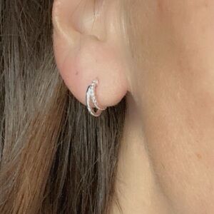 Discover the allure of our Sterling Silver Double Hoop Huggy Earrings – a fusion of elegance and versatility. Embrace the artistry of two hoops in one, creating a chic layered effect that's both modern and timeless. The pairing of a smooth hoop with a delicately twisted counterpart seamlessly elevates your style, offering the illusion of a stacked look.