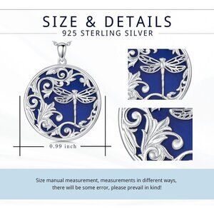 Features: Crafted from hypoallergenic sterling silver, this necklace features a beautiful round lapis lazuli base with a detailed dragonfly on top, accented with delicate flowers. The pendant's size and beautiful blue hue make it perfect for daily wear or special occasions.