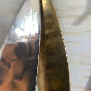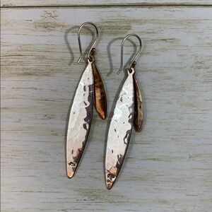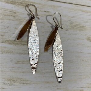 Sterling silver drop earrings. Silver oblong oval with smaller gold tone oval, probably brass. Fish hook style. Marked 925. Overall length is 2.5” and weight is 5.14g. Great condition.