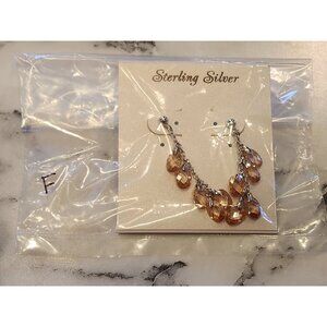 Sterling Silver Drop Earrings With Faceted Amber-Colored Crystal Beads