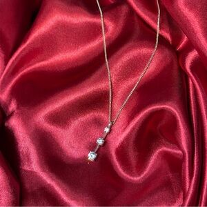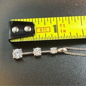 Sterling Silver Drop Pendant Necklace 3-Stone CZ