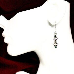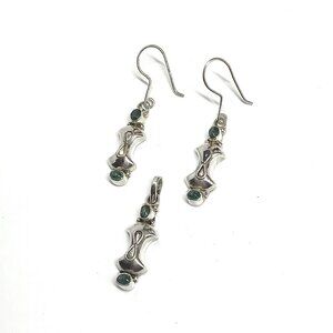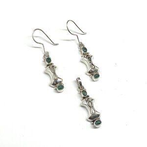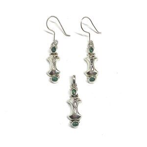 Sterling Silver Earrings, Chic Boho Style Emerald Earrings + Pendant set