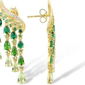 Sterling Silver Earrings Green Ombre Raindrops Stud Cubic Zirconia Jewelry