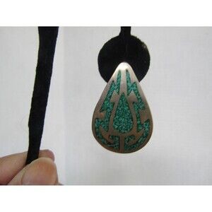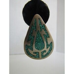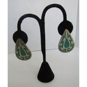 Sterling Silver Earrings Turquoise Inlay Vintage Mexico Taxco Large Stamped