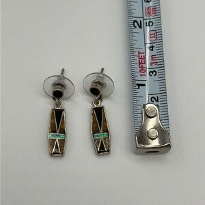 Sterling Silver Earrings with Opal Stone Design. Stone material is unknown but it appears to be natural and each piece is stunning! No brand markings. No flaws. No visible signs of wear or use. Please refer to photos for exact size and condition.
