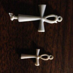 These are all solid sterling silver pendants. They are shaped like an Egyptian ankh. We have three different sizes. All hand carved, and handmade.